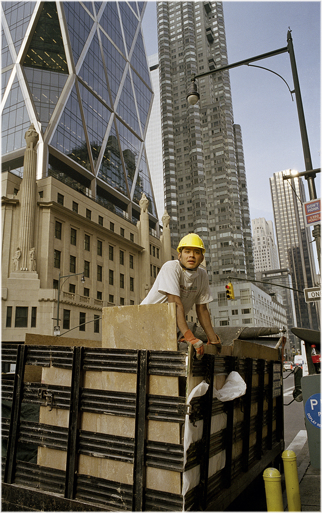 As a novice when it comes to shooting color, I like this picture because the color is used sparingly. After a quarter century of just shooting without too much thought, this additional element (color) is challenging my last couple of brain cells. Normally I would have been pleased with all the rectangles and triangles in this picture, but the yellow helmet has added a focal point which wouldn’t have existed in black & white, and I guess it might even be…better? Ah, such confusion this has wrought on my soul…