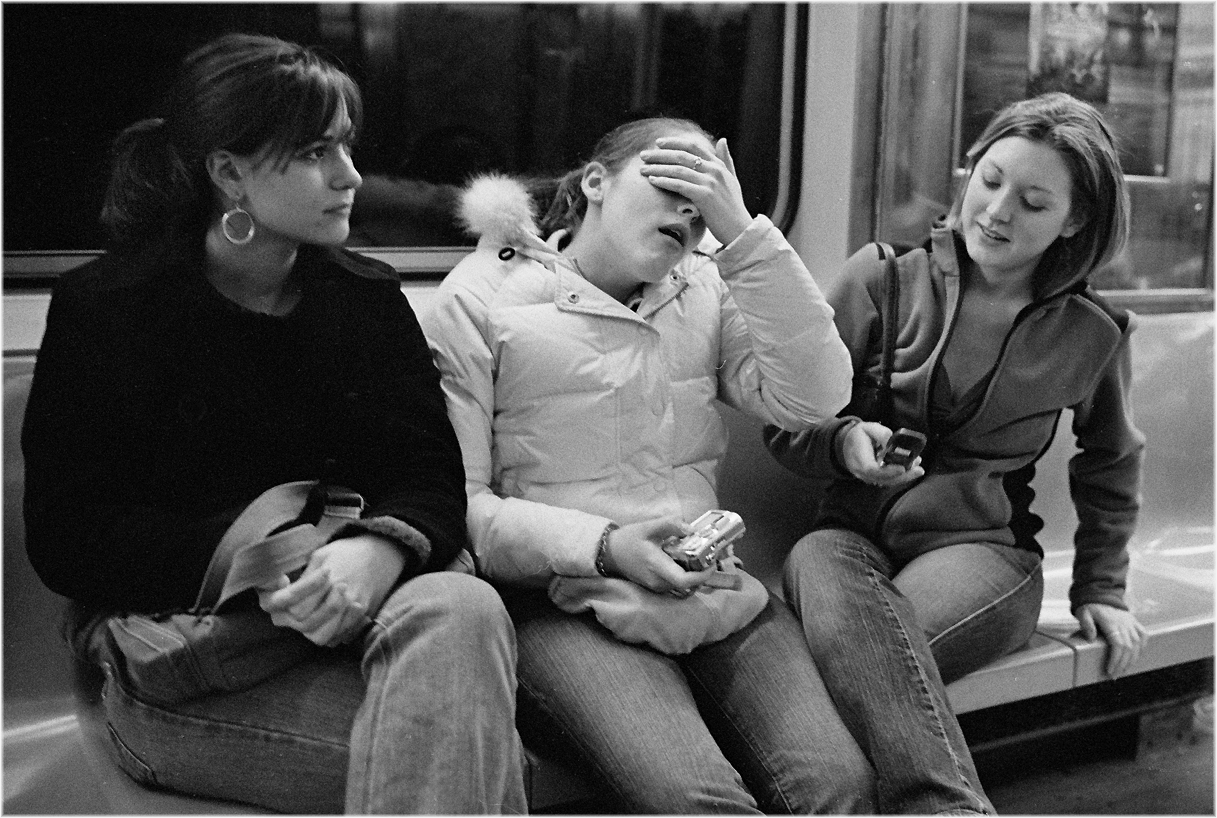 There is a complaint that “Street Photography” doesn’t ask enough questions and only provides answers. I disagree. I have looked at this picture for several years and all I can conclude is that the beautiful young lady on the right is probably a very dedicated Christian or Catholic. I also know that she was headed either uptown or downtown on the I.R.T. I have no idea about anything else. The woman on her left could be her mom, but could also be her step mother or an aunt. Does her father play a large role in her life? Did he leave the woman on the left? Is the young woman a virgin. (like her homegirl Mary?) Is there a chance she’s already pregnant? Is she happy? Has she found a college yet, or did she drop out of school? Does she have a dog? A cat? A hamster?