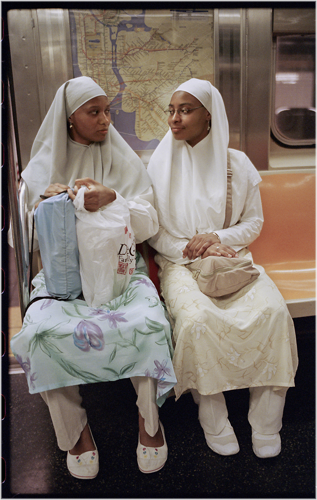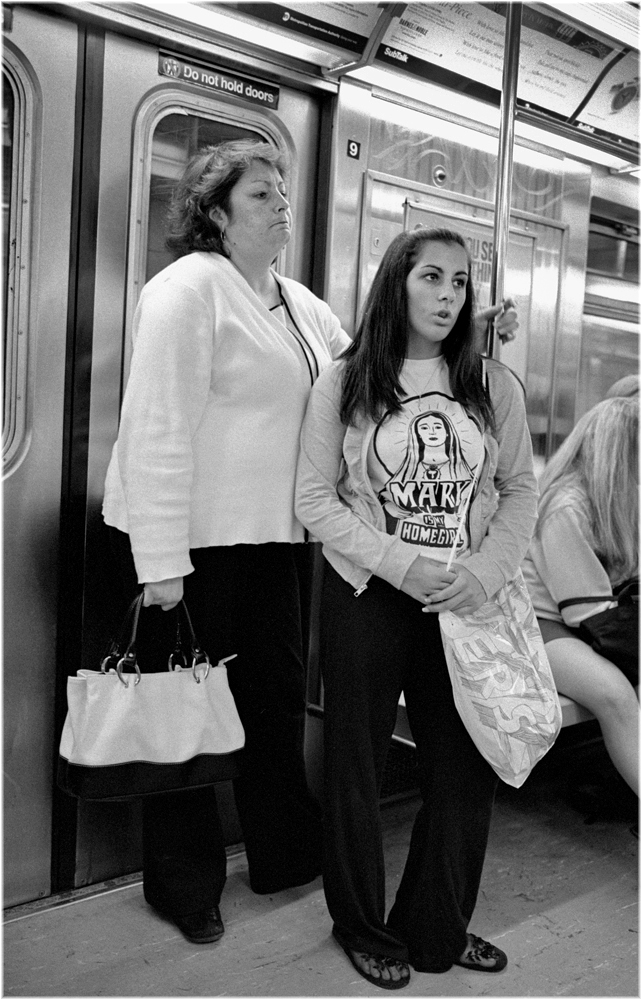 There is a complaint that “Street Photography” doesn’t ask enough questions and only provides answers. I disagree. I have looked at this picture for several years and all I can conclude is that the beautiful young lady on the right is probably a very dedicated Christian or Catholic. I also know that she was headed either uptown or downtown on the I.R.T. I have no idea about anything else. The woman on her left could be her mom, but could also be her step mother or an aunt. Does her father play a large role in her life? Did he leave the woman on the left? Is the young woman a virgin. (like her homegirl Mary?) Is there a chance she’s already pregnant? Is she happy? Has she found a college yet, or did she drop out of school? Does she have a dog? A cat? A hamster?